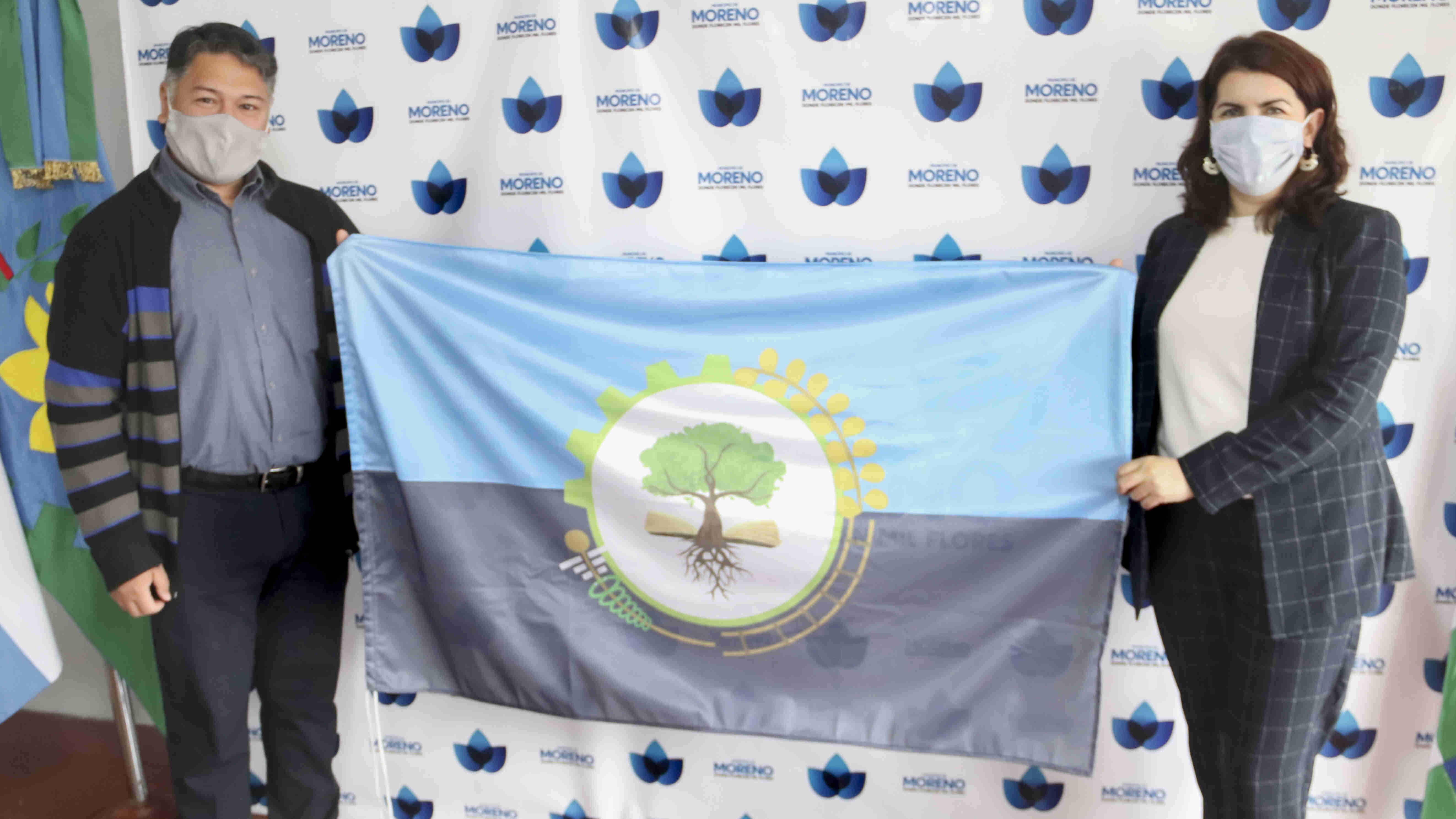 Esta bandera es una propuesta del vecino morenense Leonardo Chamorro, y fue elegida por la comunidad con el 51.6 % de los votos entre once finalistas. El viernes 23 de octubre, Mariel Fernández recibió a Leonardo, a quien felicitó y agradeció por su participación y dedicación con la insignia local.